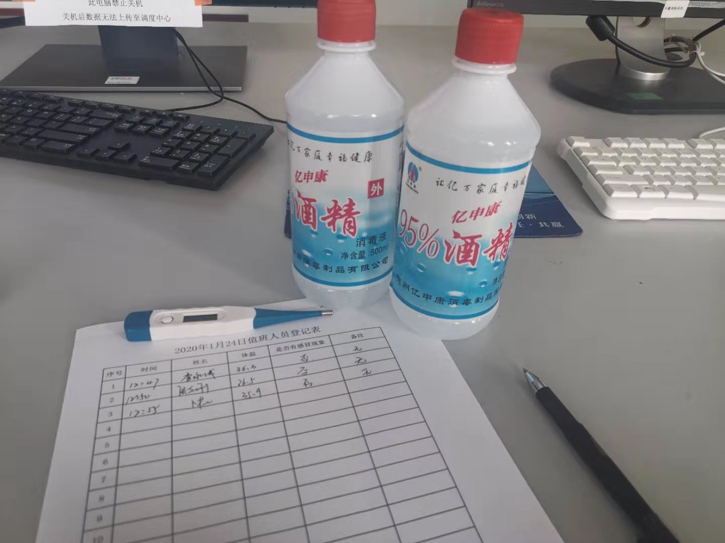 疫情期间,配齐消毒水、口罩等防护物资,发放至每个值班人员手中,要求所有值班人员必须带口罩上岗,坚持每人每天两次量体温,并记录汇报。定期对值班室、办公场所等重点区域进行彻底消毒。