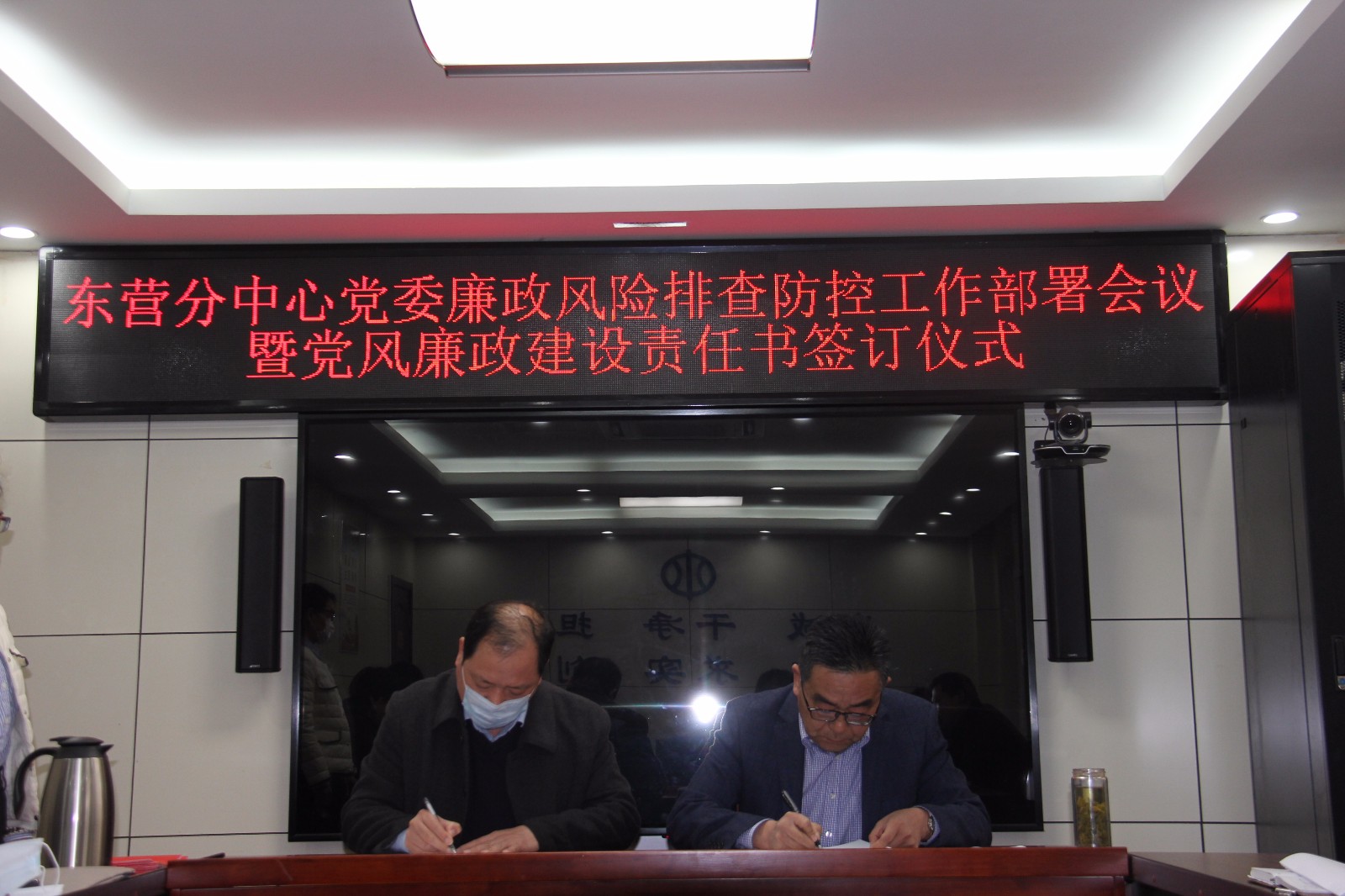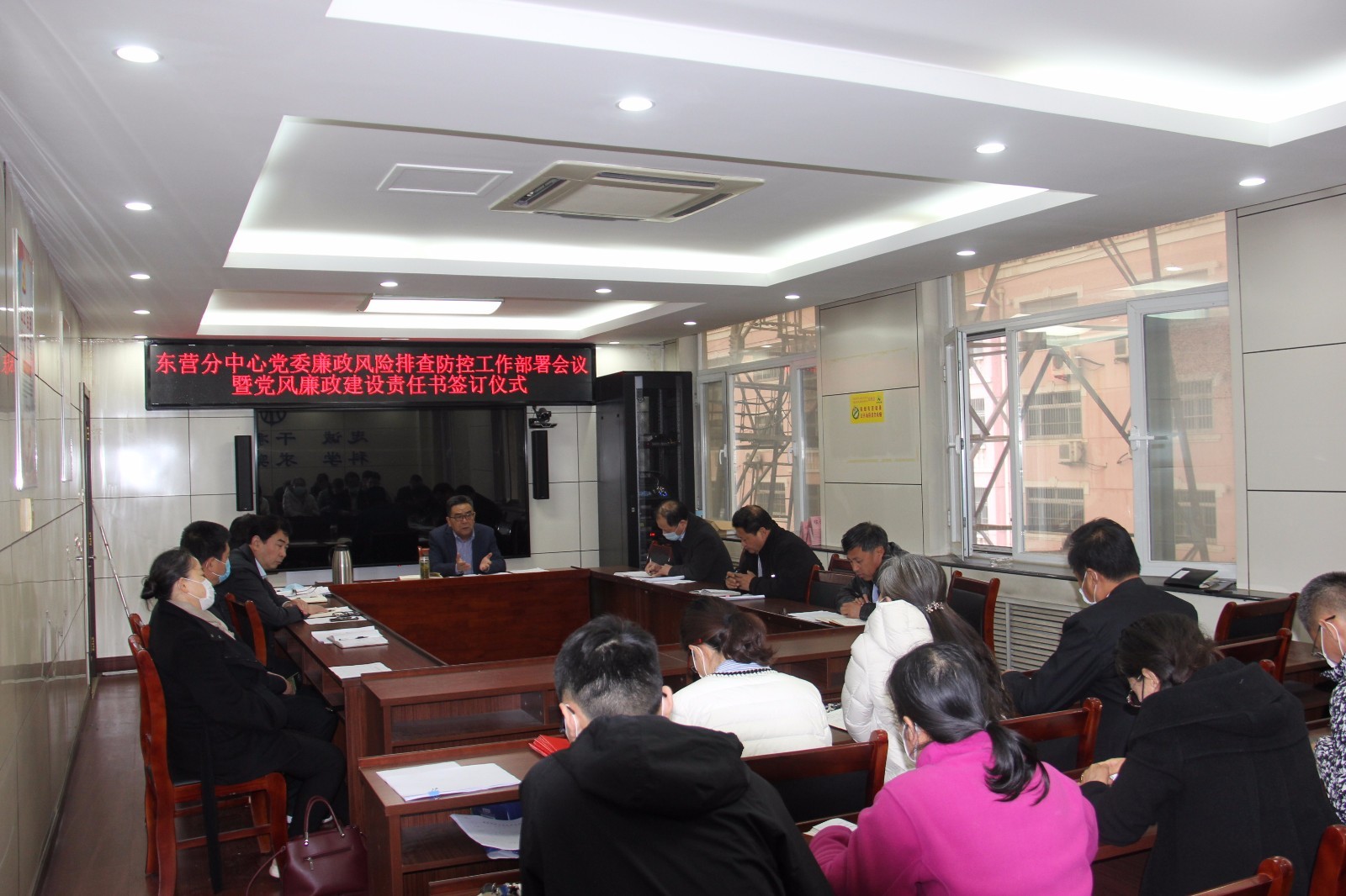 4月9日下午,东营分中心召开廉政风险排查防控工作部署暨党风廉政建设责任书签订会议。分中心党委书记、主任高玉强主持会议并作总结讲话,纪委书记任忠生传达有关文件精神。