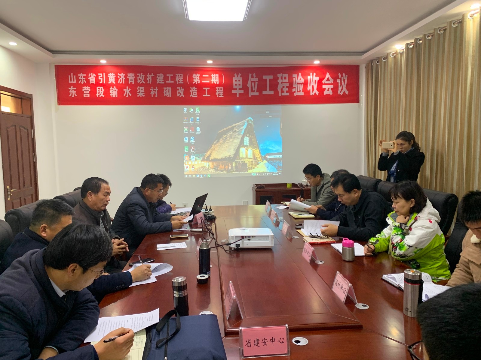 山东省引黄济青改扩建工程(第二期)东营段工程在参建各方的大力支持配合下,顺利完成2019年度建设任务和目标。为了规范建设管理,严格建设程序,完善工程建设内容,东营分中心提早部署,制定计划,狠抓落实,积极组织改扩建续期工程项目的验收。截止2020年1月14日,山东省引黄济青改扩建工程(第二期)东营段输水渠衬砌改造工程、输水河安全防护工程、闸站金结及电气设备采购安装工程三个项目全部通过单位工程(合同完工)验收。