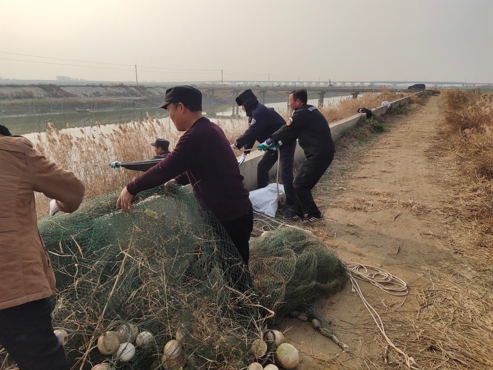 11月23日-27日,东营分中心组织养护公司巡护人员对小清河子槽进行通水前排查工作,并开展清网行动,对小清河子槽内拦河渔网进行集中清除,保证河道通畅,运行稳定。