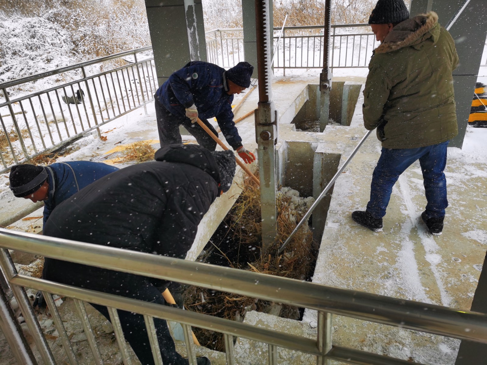 二、组建专业应急抢险队伍。接到《关于做好极端寒潮天气防范应对工作的紧急通知》后,龙口管理站临时组建了一支应急抢险队伍,突击制作了一批专用除冰工具,根据专班人员的调度,发现一处隐患,消除一处隐患。6日19时,后徐家渡槽值守人员报告闸门不能升降,应急抢险队伍立即奔赴现场,顶着寒风暴雪,在零下13°极寒环境下开展抢险,直到凌晨2点解除了险情。7日8时,绛水河闸门又发生冰冻、升降失灵,应急抢险队伍立即奔赴处理,连续奋战7个多小时,于当日15时消除冰塞。